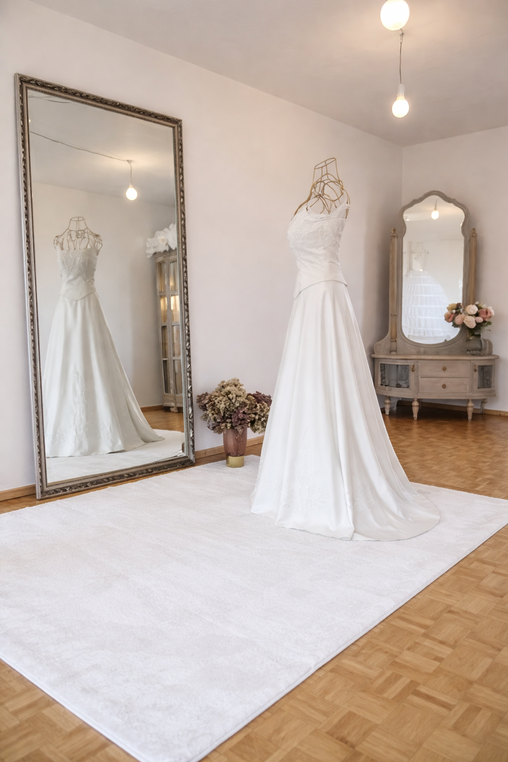 In persönlicher und ruhiger Atmosphäre entsteht Raum für Beratung, Vertrauen und die Suche nach einem Brautkleid, das zu dir und deiner Ausstrahlung passt.