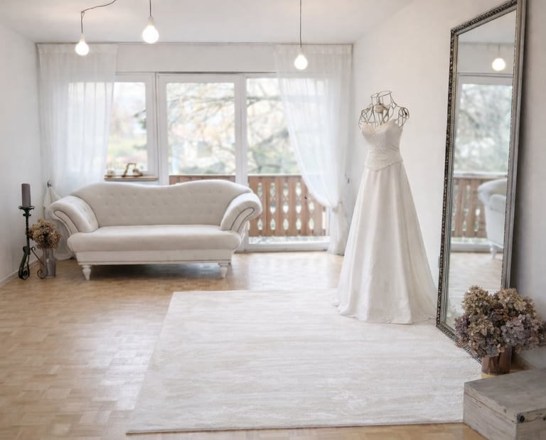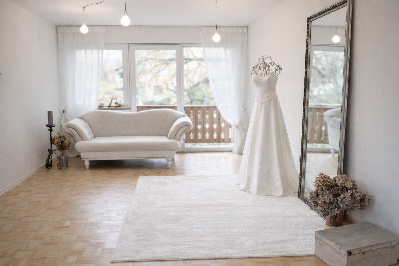 Mein Atelier in Thyrnau bei Passau wurde mit viel Liebe zum Detail gestaltet – für persönliche Beratung, besondere Momente und eine Anprobe in entspannter, eleganter Umgebung.